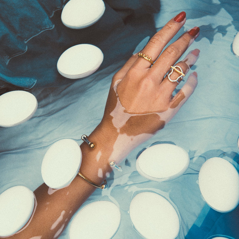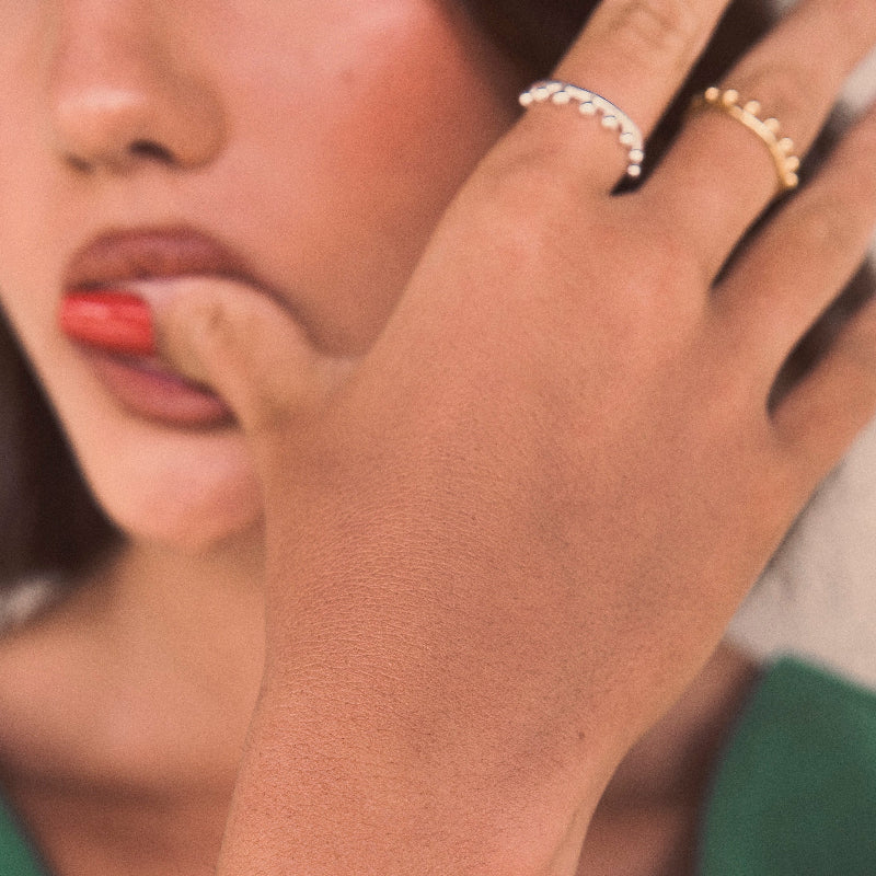 O Anel Arco-Íris combina simplicidade e estilo numa joia delicada que combina com tudo. Disponível nas opções banhado a prata ou a ouro, o verdadeiro truque está em usar dois no mesmo dedo, criando um efeito ainda mais interessante.