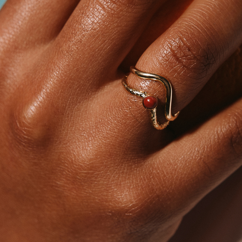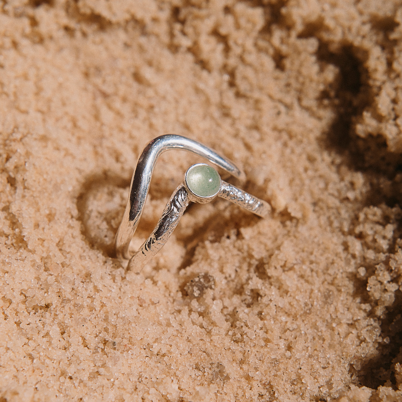 O anel Nascente é uma celebração da beleza atemporal, com sua pedra natural em evidência e textura com um toque vintage. Carregado de estilo e personalidade, ele une o charme clássico à modernidade e fica ainda mais incrível quando combinado com o anel Nascente Liso, criando um duo cheio de autenticidade e sofisticação.