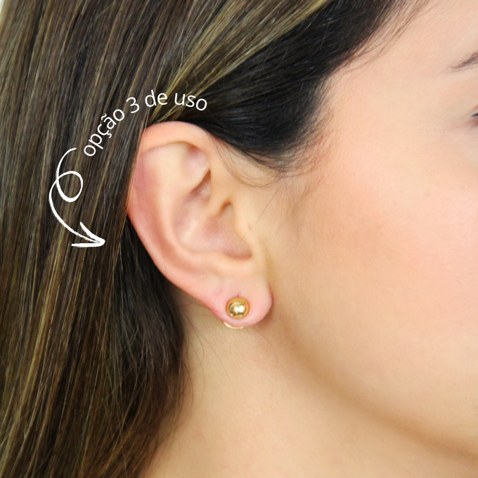 Um brinco que vale por três! O Brinco Alba é sinônimo de versatilidade, já que esse brinco pode ser usado de três jeitos diferentes. A primeira opção é apenas a esferinha dourada, que se torna um brinco delicado que combina com qualquer roupa. A segunda e terceira opções são acoplar a esferinha à peça prata do conjunto, na frente ou atrás do lóbulo da orelha, dando à joia um sentido completamente novo. Um brinco moderno, leve e que te permite explorar a sua criatividade para usá-lo como você preferir!