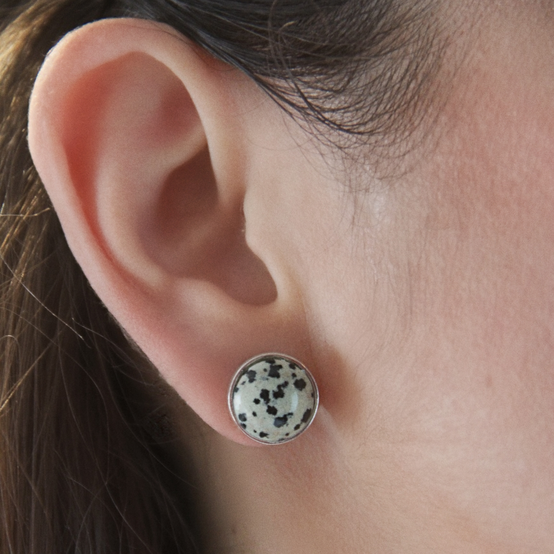 O Brinco Dot é pequeno, elegante e pensado para acompanhar você em qualquer ocasião. Com design minimalista e sofisticado, ele traz uma gema natural no centro, disponível em três opções exclusivas: Jaspe Dálmata, Sodalita ou Quartzo Verde. Perfeito para o uso diário, esse brinco une praticidade e estilo em uma peça leve e confortável. O detalhe especial fica por conta do acabamento na parte de trás, a estampa de ovinhos, que garante beleza em todos os ângulos. Ideal para quem busca uma joia discreta, mas cheia de personalidade.