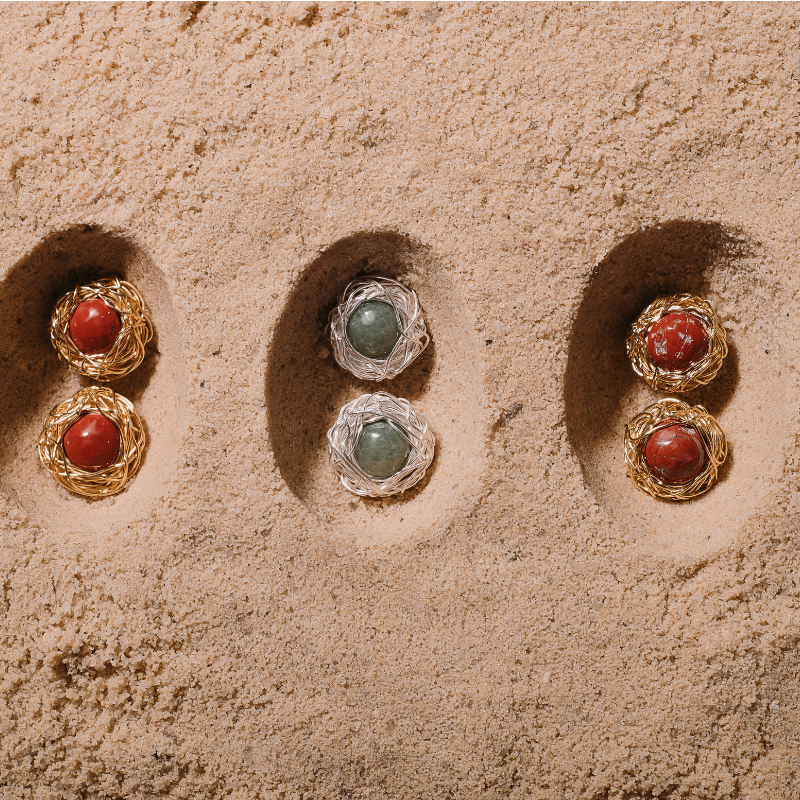Cada brinco Ninho é único, feito à mão com fios delicados que envolvem uma pedra natural, conferindo um charme exclusivo. Inspirado na leveza e proteção dos ninhos, é uma joia que combina delicadeza e sofisticação, ideal para mulheres que apreciam peças cheias de significado.
