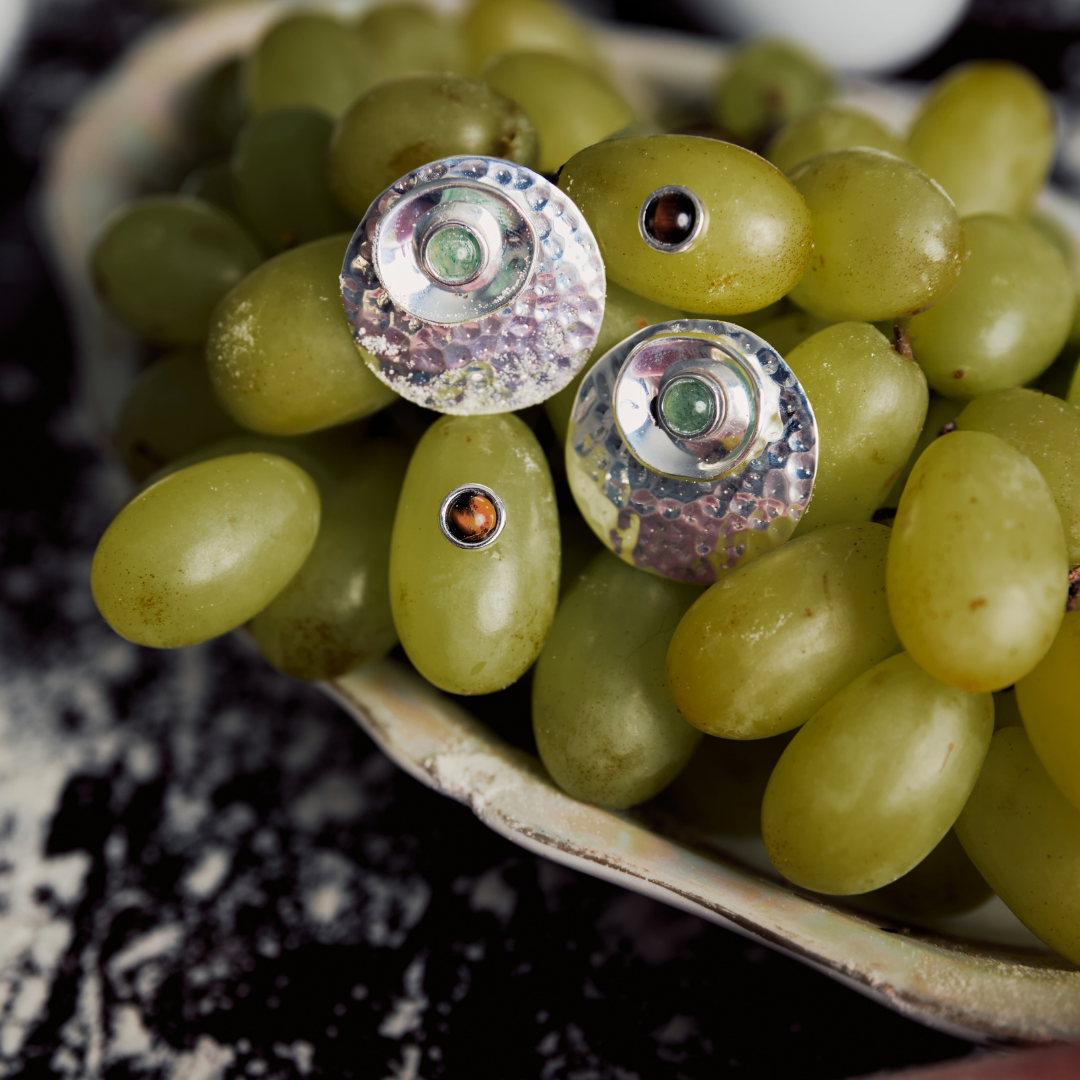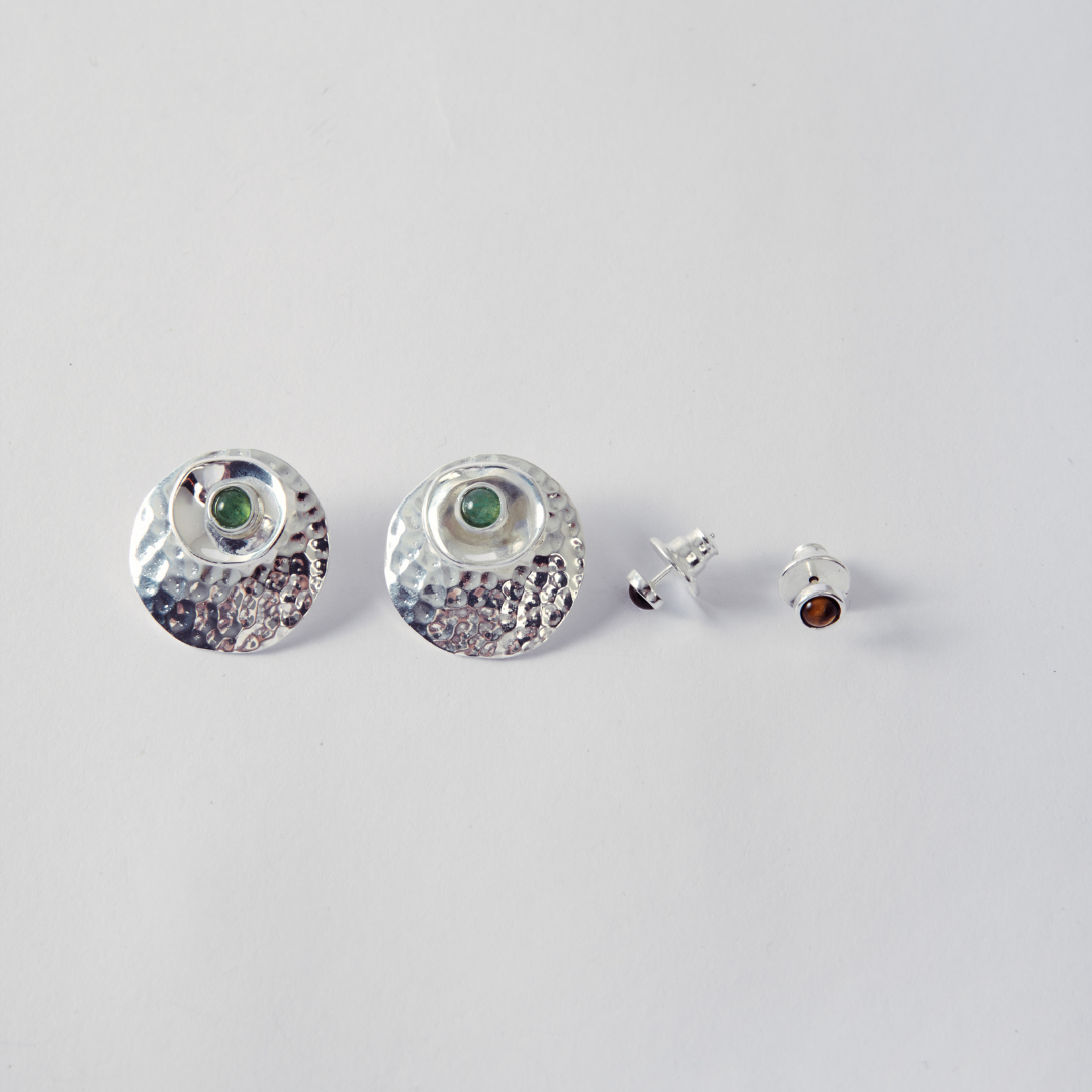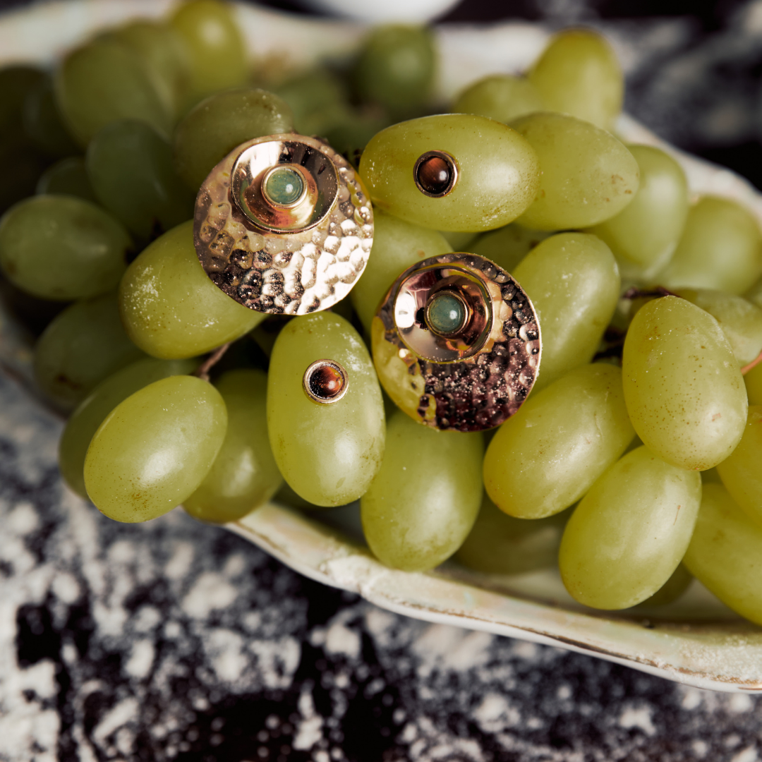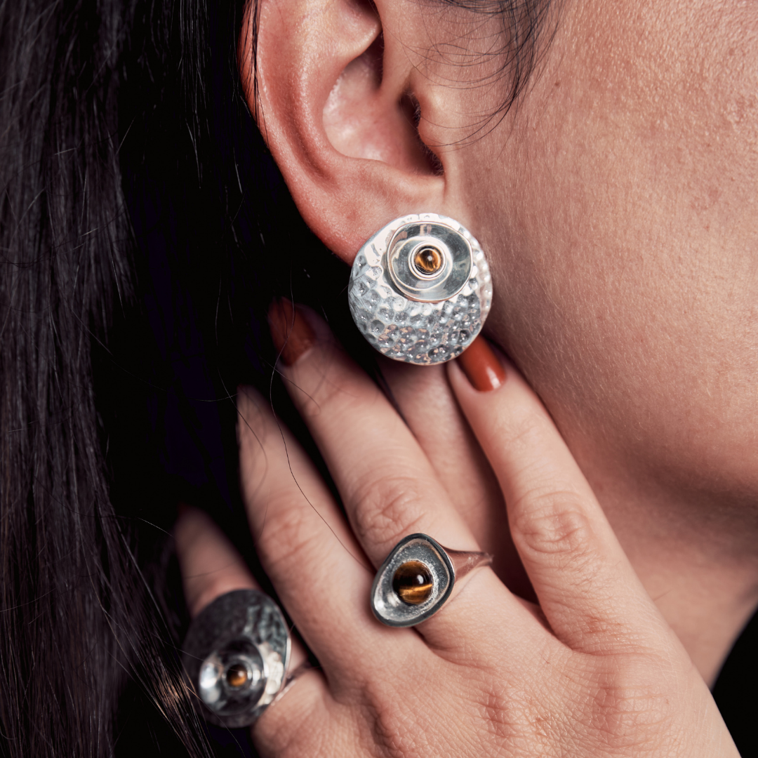 Essa é uma peça totalmente modular: cada elemento (a gema, a esfera martelada e a cumbuca) pode ser removido e combinado de diferentes formas. Isso permite que o brinco se transforme junto com você, criando versões mais minimalistas, mais marcantes ou mais sofisticadas dependendo do momento.
