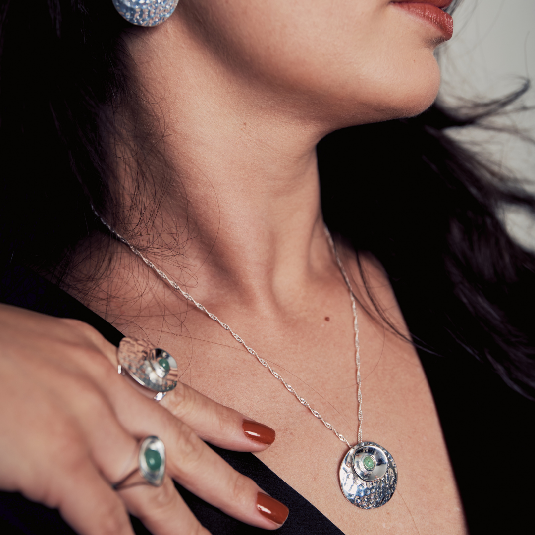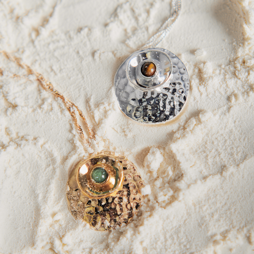 O Colar Tacho carrega a alma dos objetos que atravessam gerações. Seu piloto foi feito à mão pela própria Ivana, martelado pacientemente para reproduzir a textura viva dos antigos tachos de cobre que ainda eram feitos com a sabedoria e técnicas de antigamente.