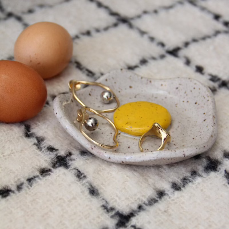 Nosso porta-joias de cerâmica, em formato de ovo, é a combinação perfeita entre design divertido e funcionalidade. Compacto, delicado e cheio de personalidade, ele guarda seus acessórios favoritos enquanto adiciona um charme inesperado ao seu espaço.